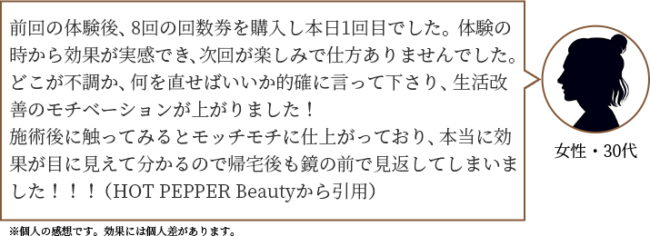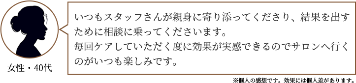 同じようなお悩みを持つお客様にも効果を感じていただけております。
